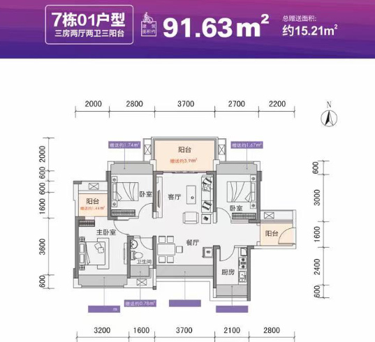 建筑面积: 91㎡(3房0厅0卫)