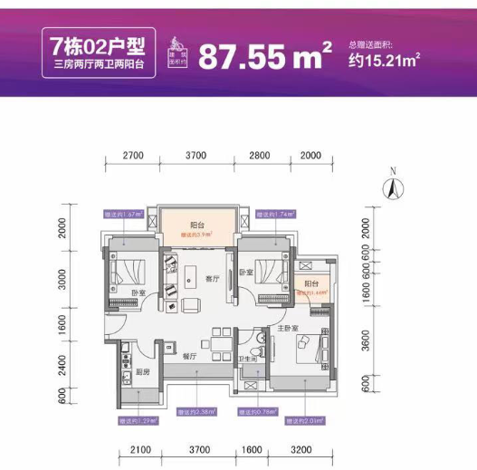 建筑面积: 87㎡(3房0厅0卫)