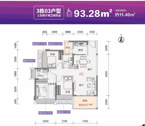 建筑面积: 93㎡(3房0厅0卫)