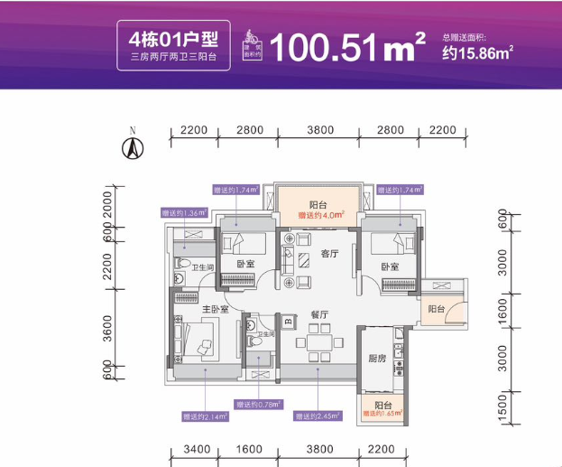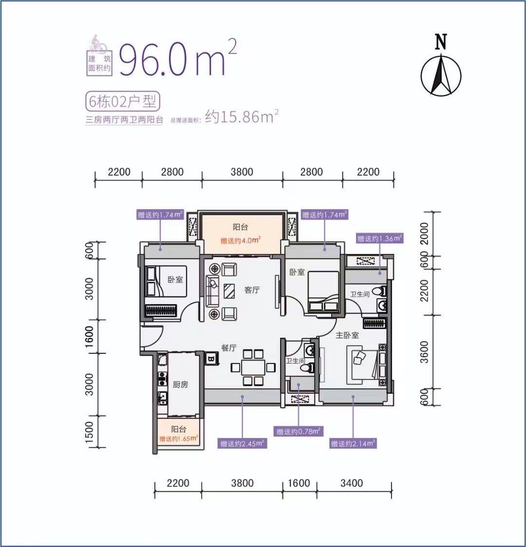 建筑面积: 96㎡(3房0厅0卫)