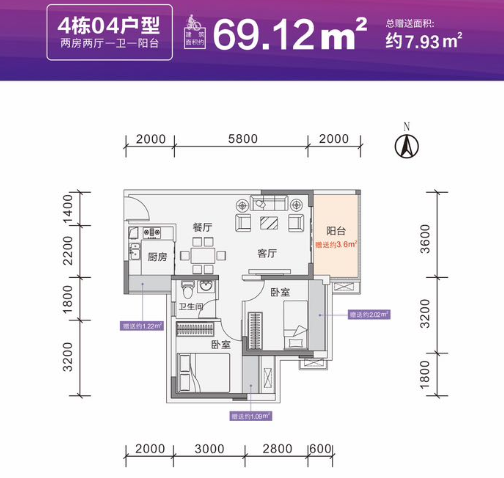 建筑面积: 69㎡(2房0厅0卫)
